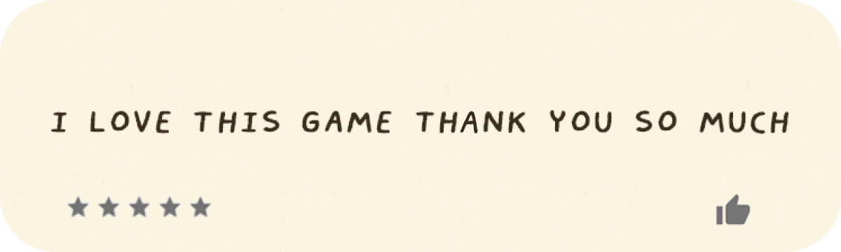 We develop games with warmth and care. We carefully think over the gameplay, illustrations, animations and music