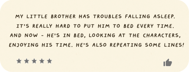 A game for children from 2 years old, it helps to form a ritual before going to bed, thanks to the soporific atmosphere, simple gameplay and cozy illustrations.